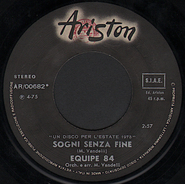 The label may have some ring wear or discoloration, but it should be barely noticeable. Spindle marks may be present. Picture sleeves and inner sleeves will have some slight wear, slightly turned-up corners, or a slight seam split. An LP cover may have slight signs of wear, and may be marred by a cut-out hole, indentation, or cut corner. In general, if not for a couple of minor things wrong with it, this would be Near Mint.