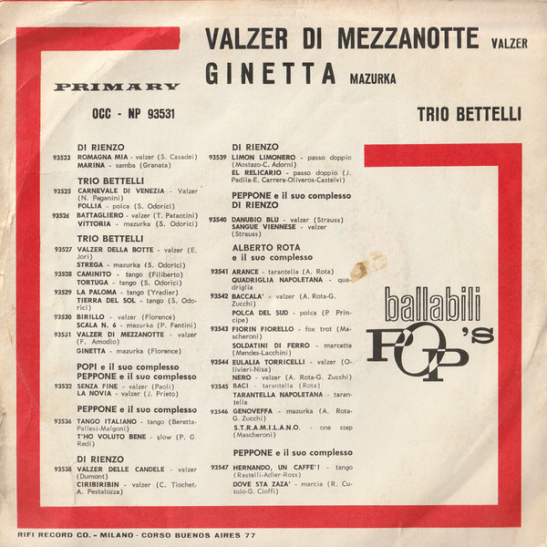 Trio Bettelli - Valzer Di Mezzanotte / Ginetta