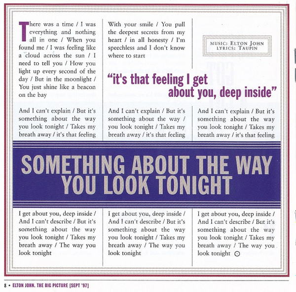| 6 | Something About The Way You Look Tonight | (5:08) |